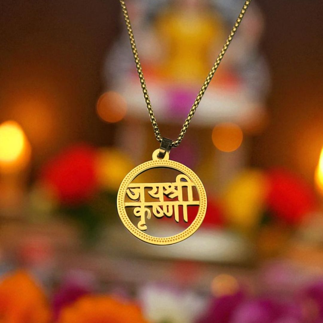 For Krishna devotees, the Jai Shree Krishna Gold Plated Pendant captures divine love and wisdom.