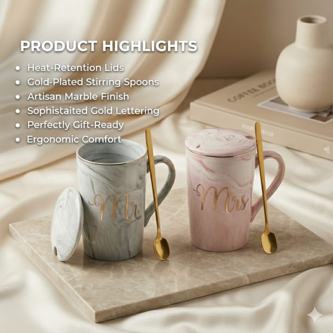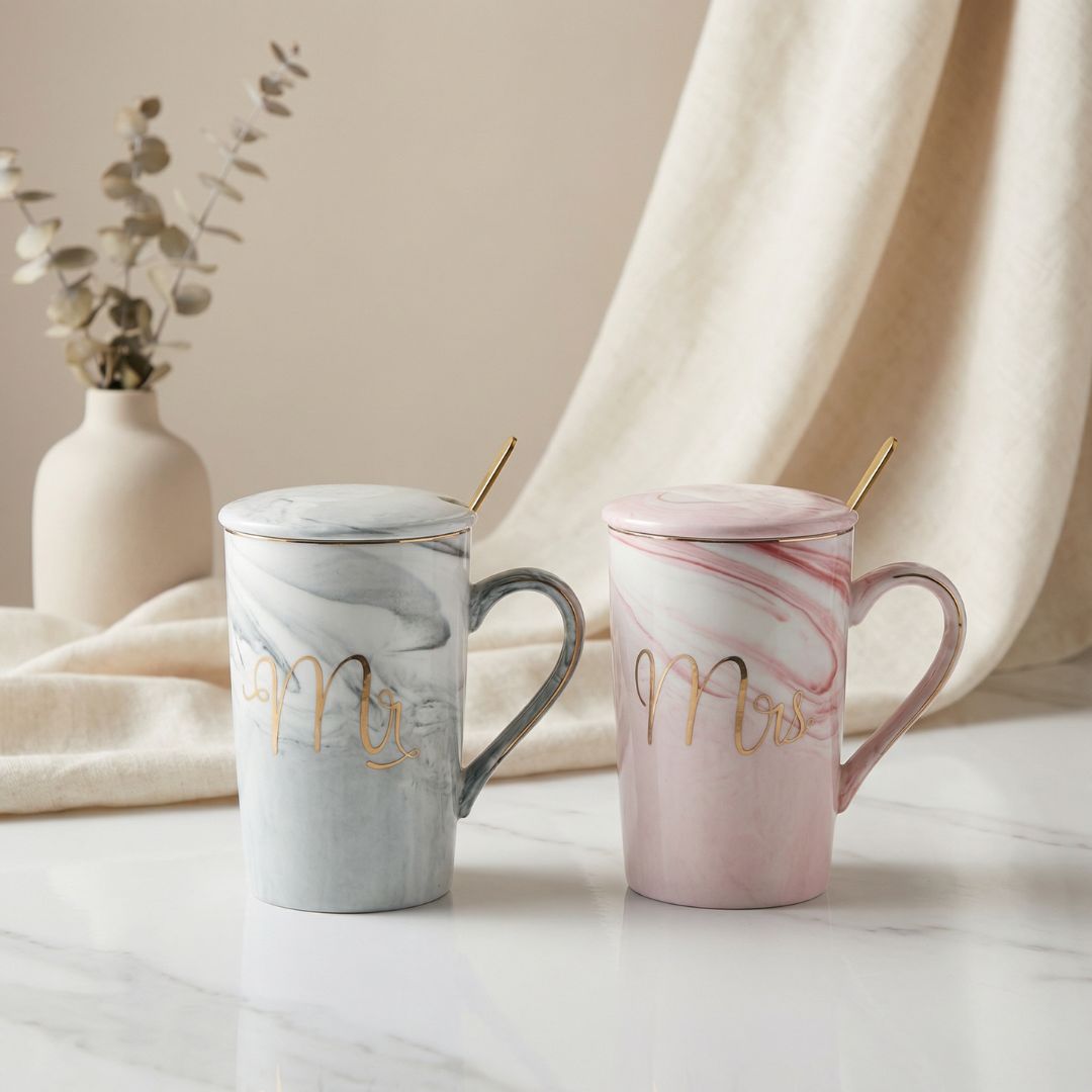 Designed with elegant marble finishes and classic Mr and Mrs detailing, this matching duo is made for couples who share life’s little rituals — from slow morning coffees to cozy evening conversations.