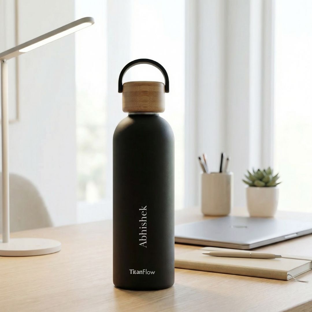 The TitanFlow Personalised Bamboo Sip Bottle blends everyday functionality with a clean, premium design — finished with a natural bamboo lid and personalised with a name that makes it truly yours.
