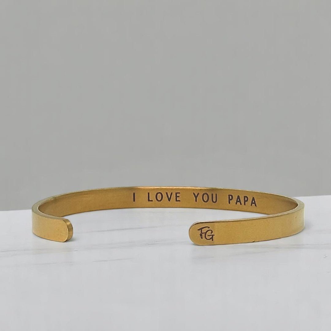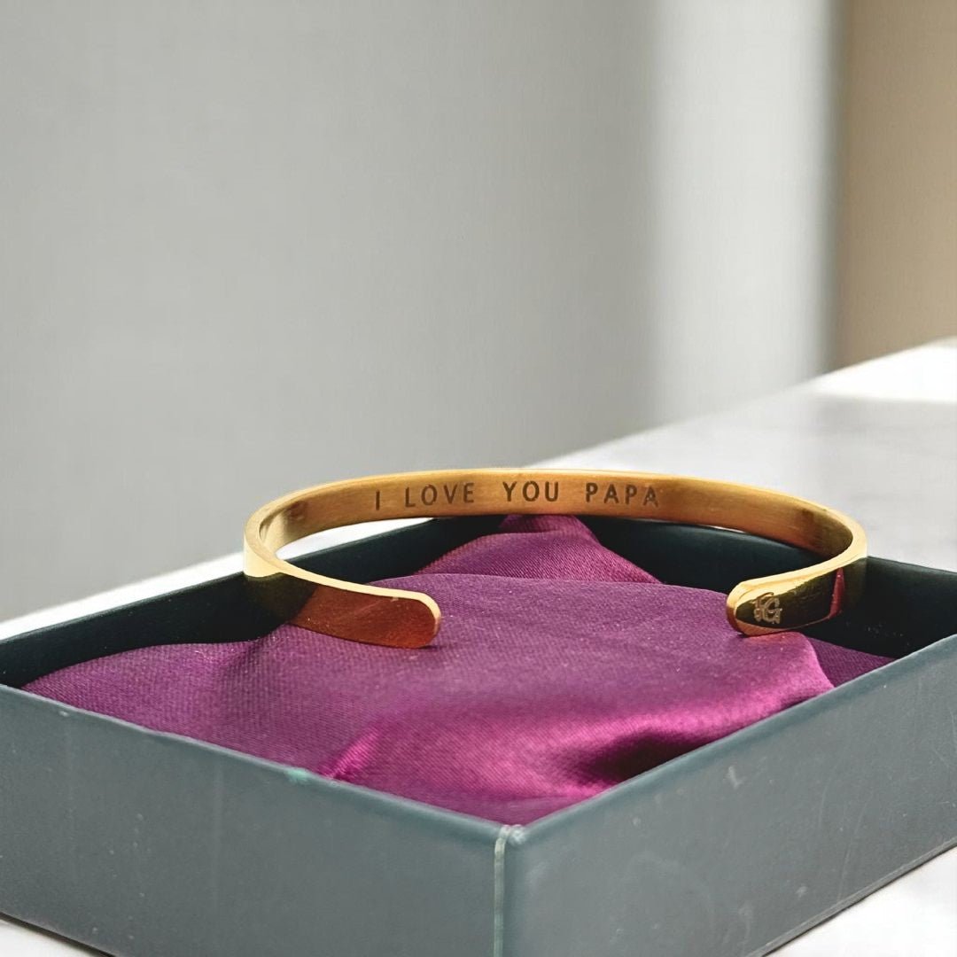 This minimal gold-toned cuff bracelet is engraved on the inside with the message “I LOVE YOU PAPA”, so he can carry your love quietly, close to him.