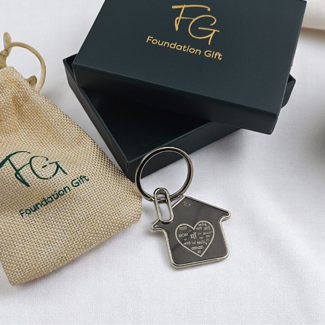 A house-shaped keychain engraved with ‘Maa’ in multiple languages — a small symbol of the love, warmth, and memories only a mother can give. Comes beautifully packed, ready to gift.