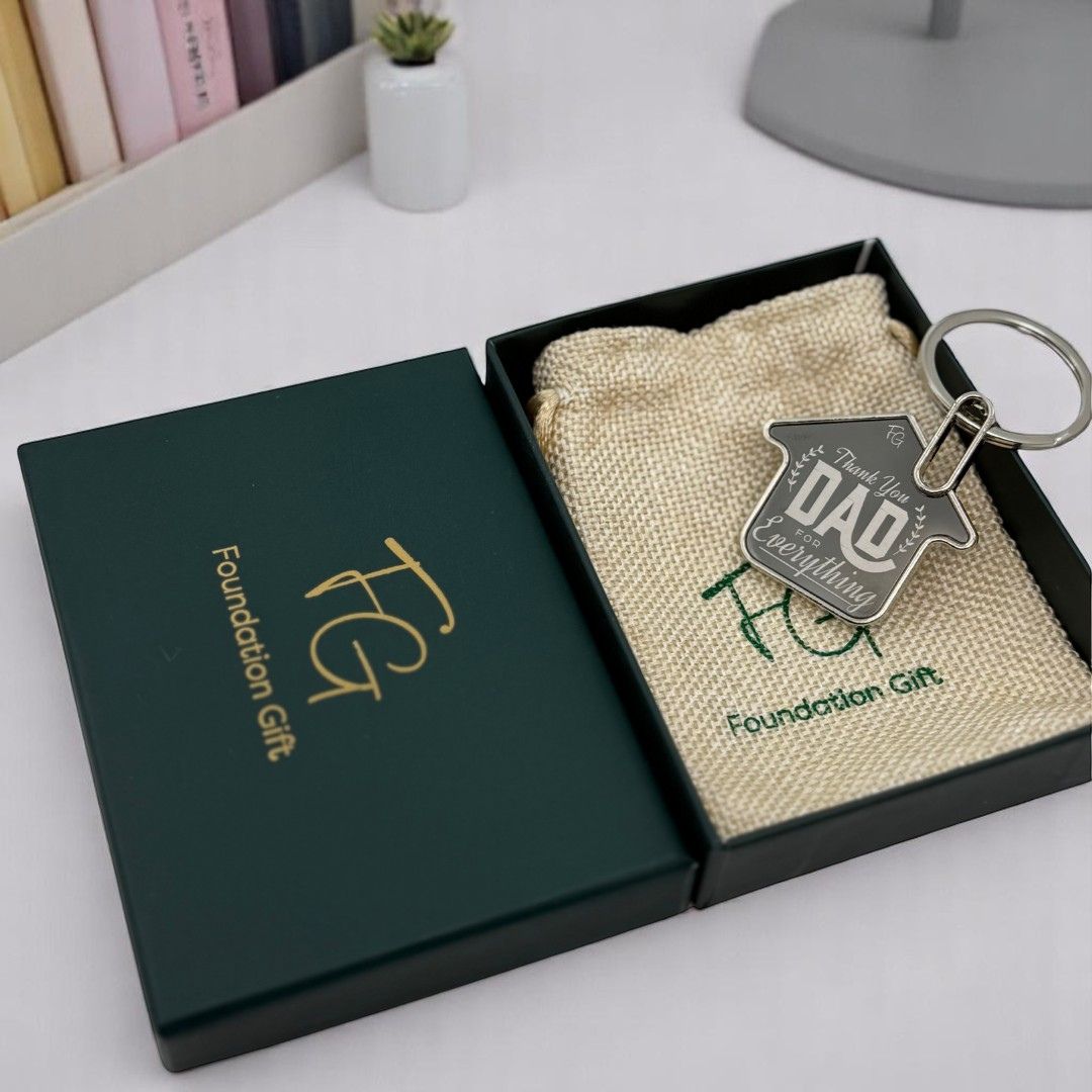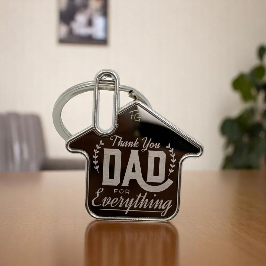 A house-shaped keychain engraved with “Thank You Dad for Everything” — a small yet powerful reminder of his constant love, strength, and sacrifices. Comes beautifully packed, ready to gift.