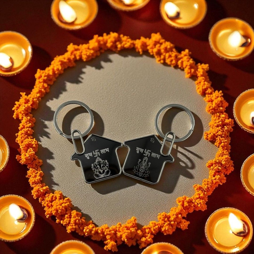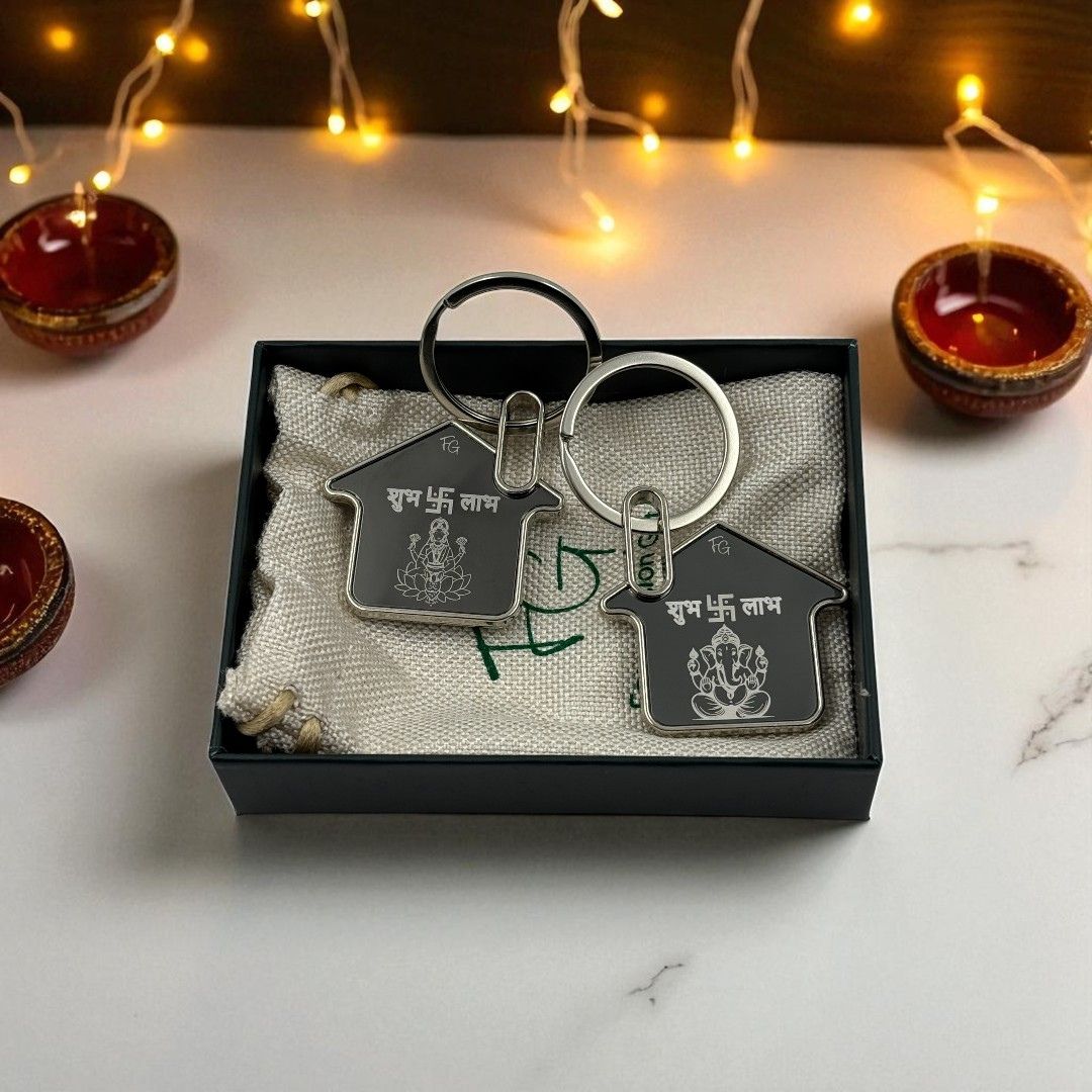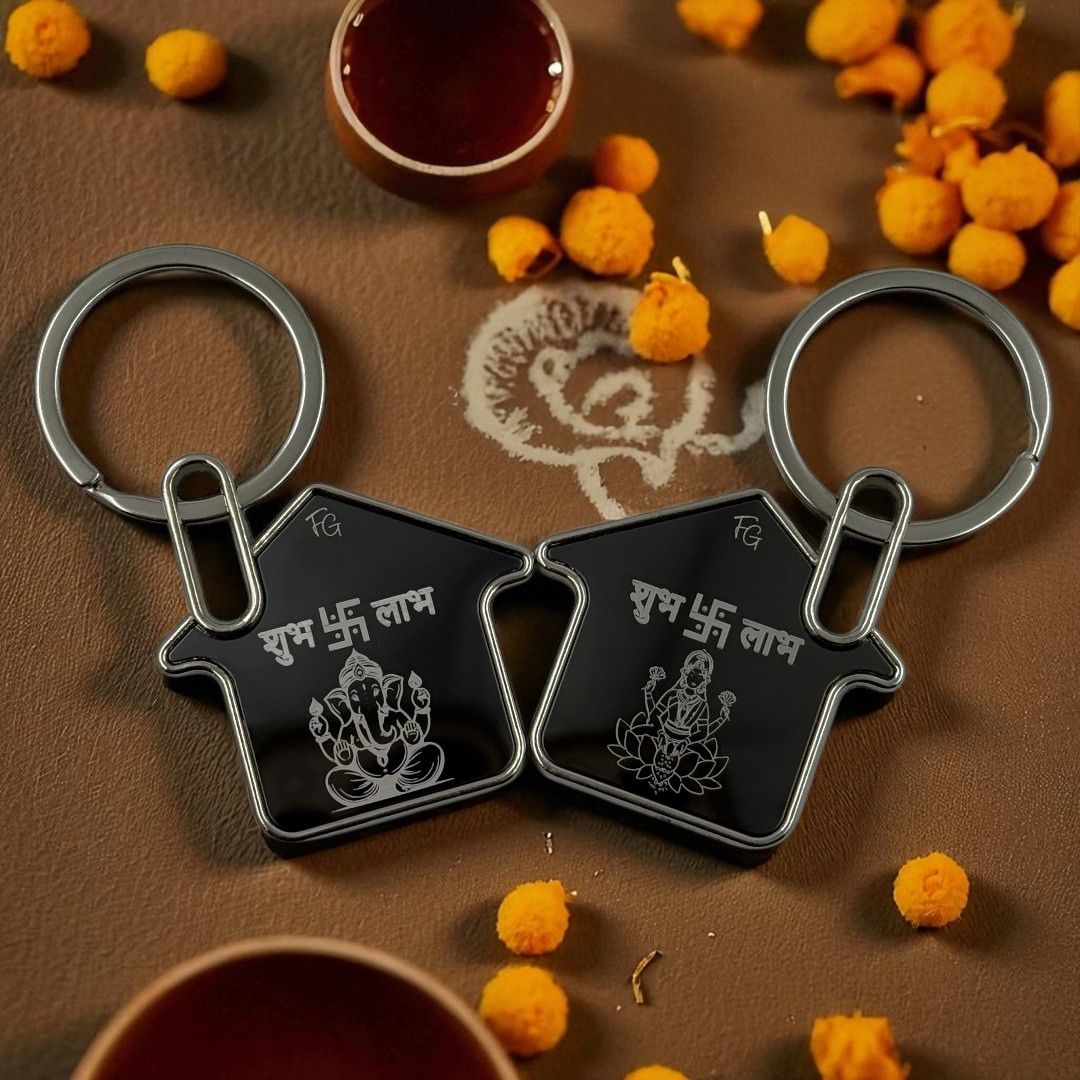 Celebrate the season of prosperity with our Shubh Labh House Keychain Set.