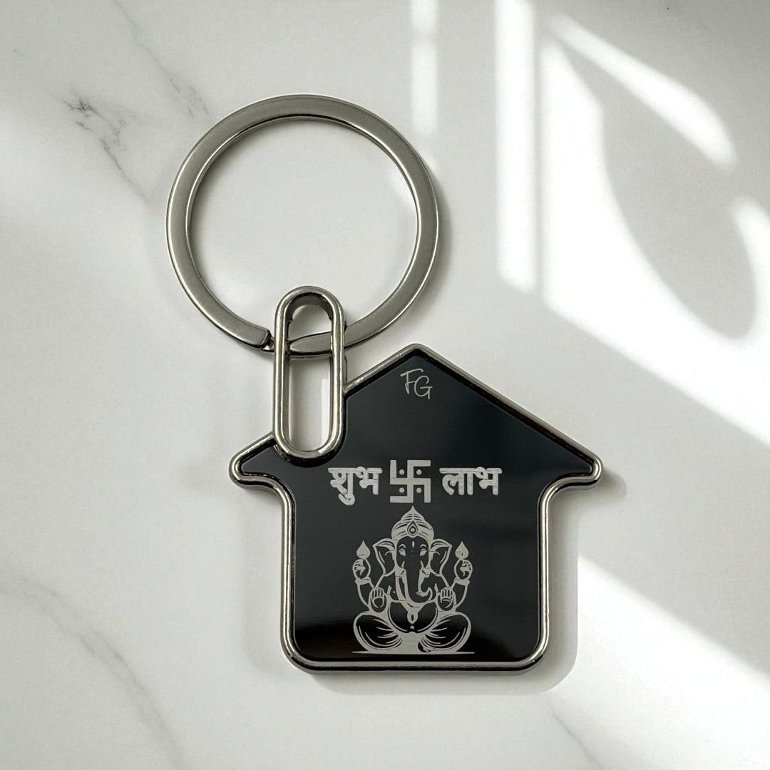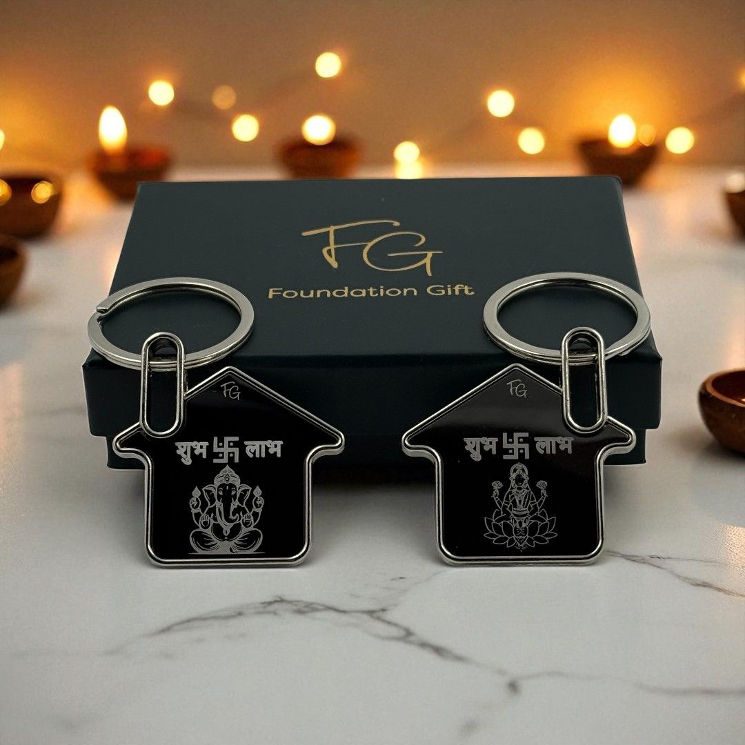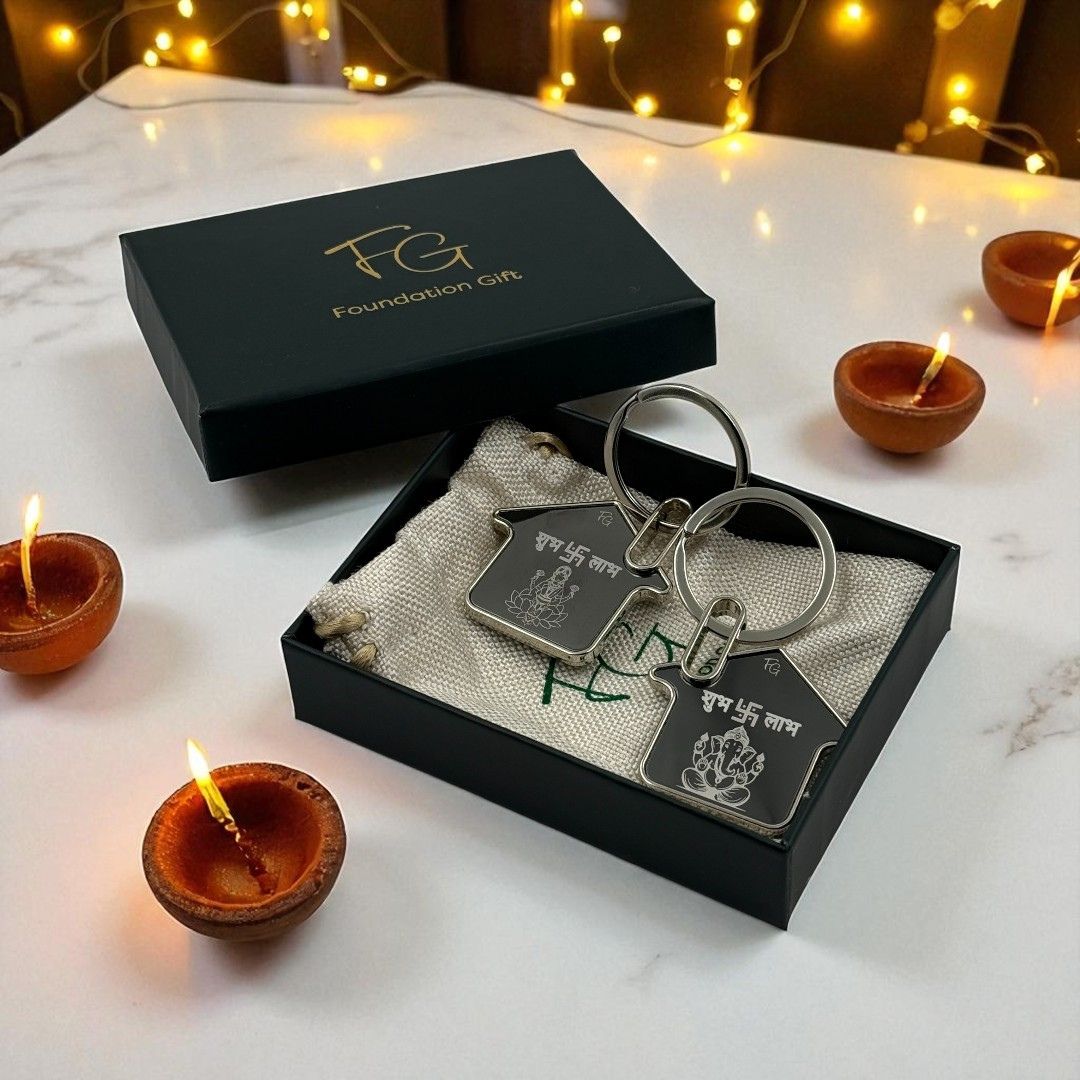 Celebrate the season of prosperity with our Shubh Labh House Keychain Set.