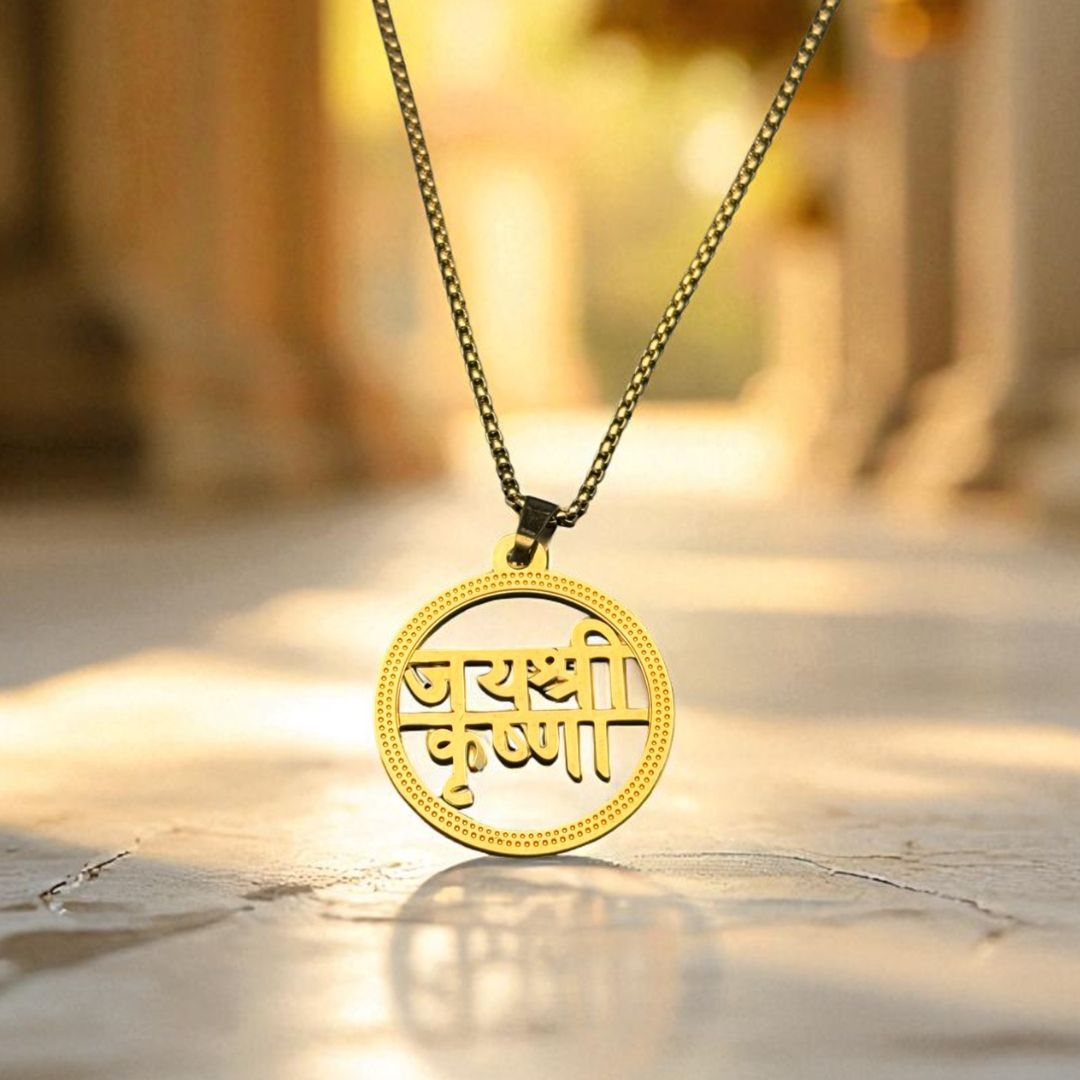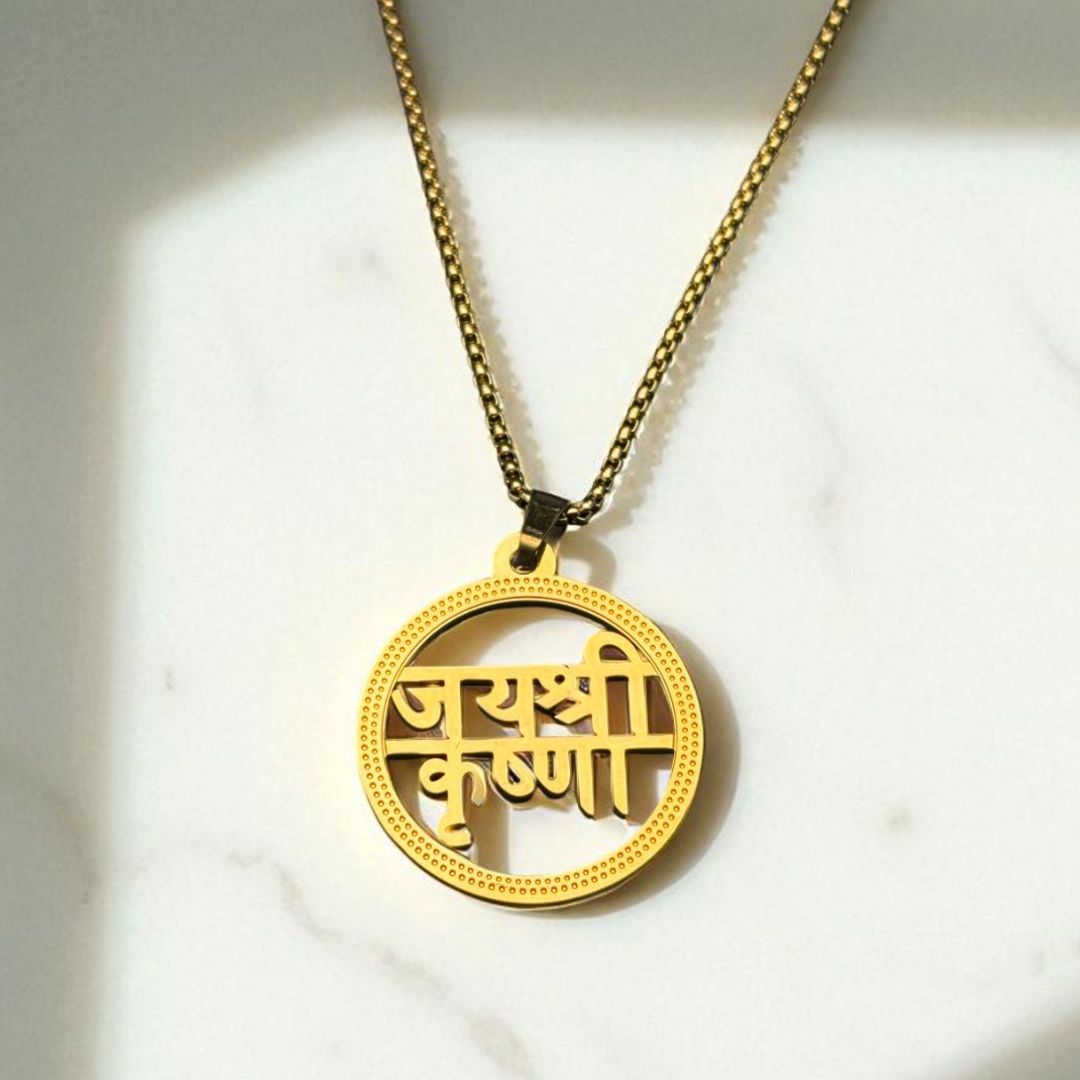Jai Shree Krishna Gold Plated Pendant - Devotional Jewelry
