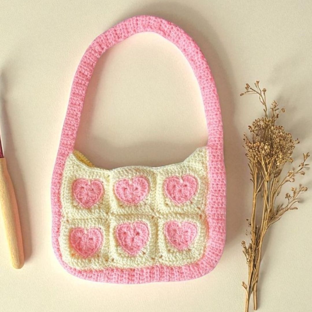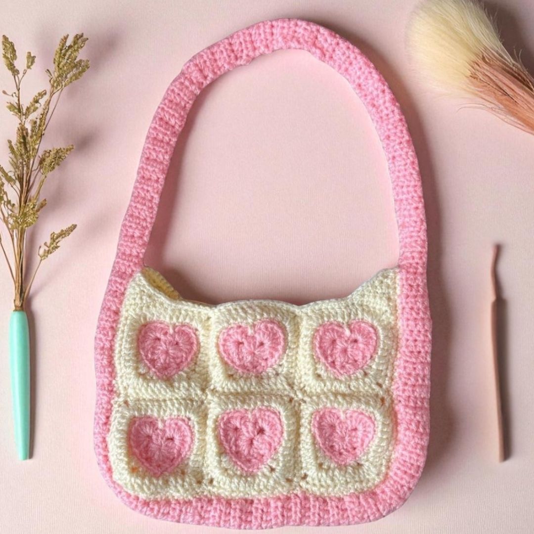 This pink crochet bag, handcrafted with love and sweet heart patterns, is the perfect soft statement for your everyday or gifting moments.