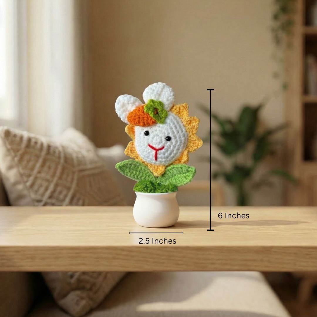 A playful sunflower paired with an adorable bunny — the cutest desk companion ever.