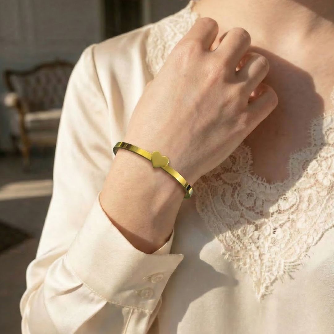 The Belle Heart Bracelet is a delicate, elegant piece that adds a soft touch of beauty to her everyday look.
